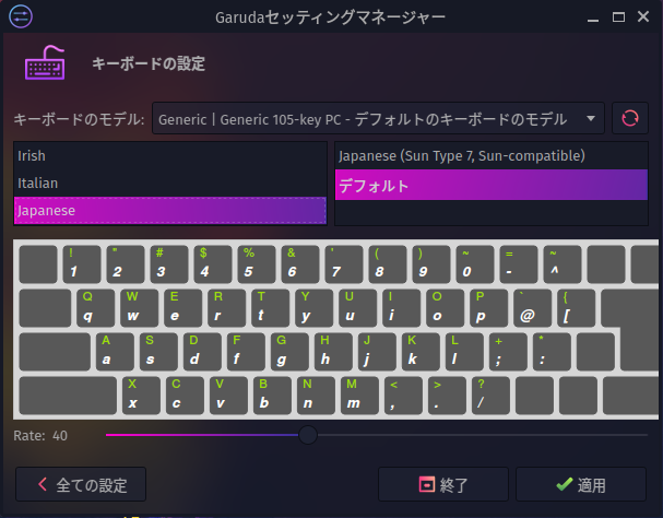 インストール時に、日本語キーボードレイアウトを設定しているにもかかわらず。
