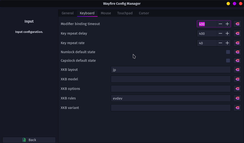 「スタート」→「設定」→「Wayfire Config Manager」