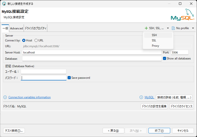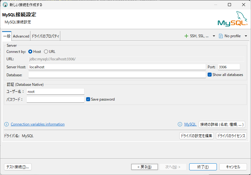 本ページでは、「DBeaver」で、「MySQL」へ接続する際の、接続設定について、記述します。