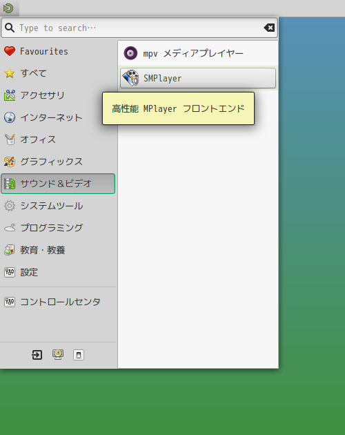 「スタート」→「サウンドとビデオ」→「SMPlayer」