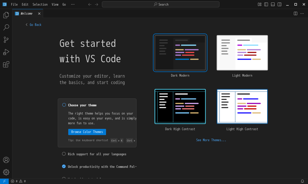 起動直後の状態です。 2025年6月13日の時点で、下記のバージョンでした。 日本語化をはじめ、「Visual Studio Code」の操作等については「統合開発環境 Visual Studio Code」をご参照ください。 何故か、前回から、日本語化に失敗します。 |