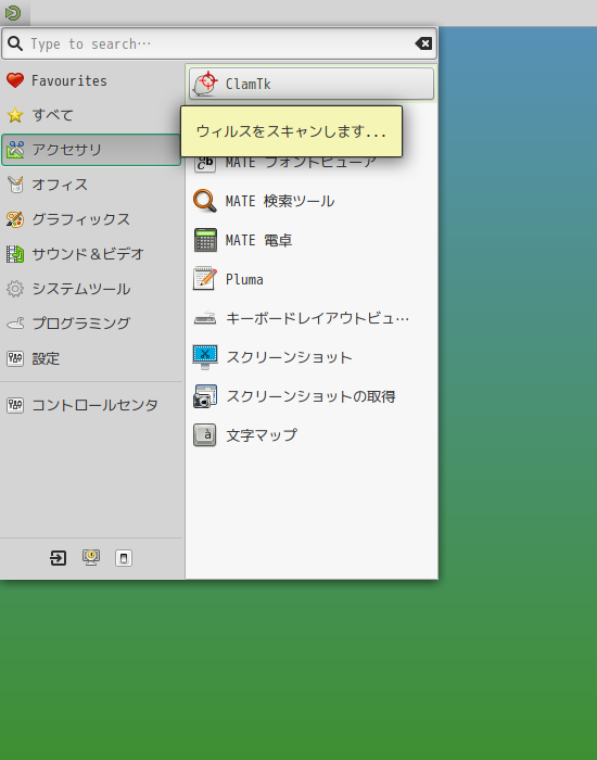 操作については「アンチウイルスソフト ClamTk」を参照してください。