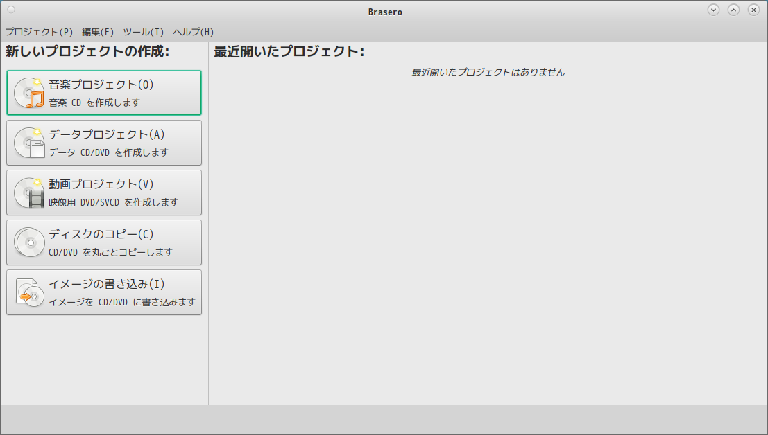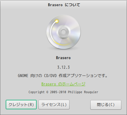 「Brasero」は、光学ディスク(CD・DVD)のライティングソフトです。