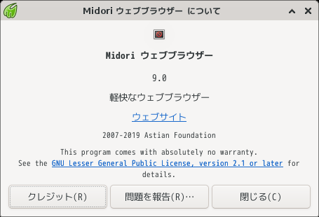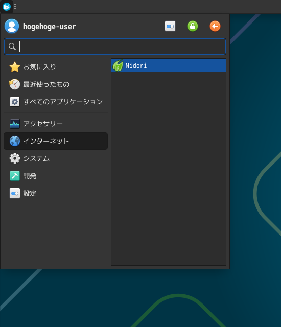 1. 概要 ブラウザとして、「Midori」を使用します。 2. インストール 「OctoPkg」で、「midori」を検索して、インストールします。 3. 起動 「スタート」→「インターネット」→「Midori」