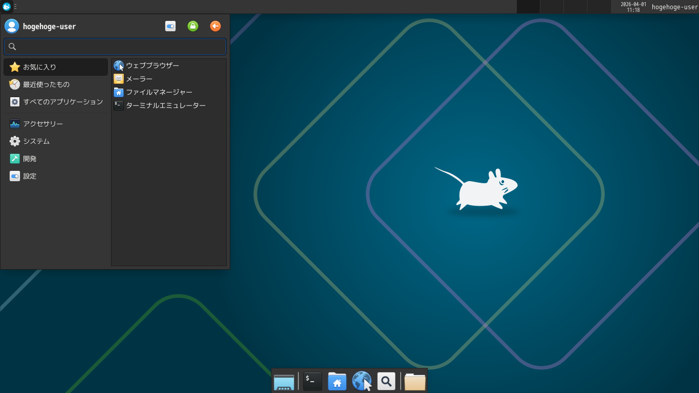 デフォルトのデスクトップ・メニューです。