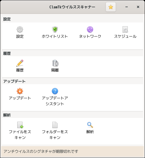 操作については「アンチウイルスソフト ClamTk」を参照してください。