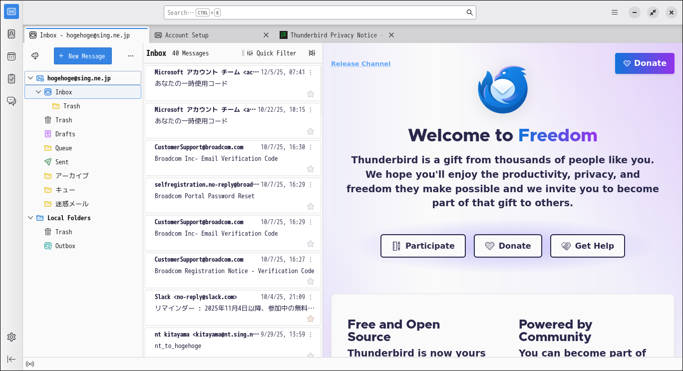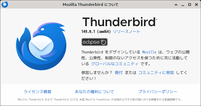 XFCE - FreeBSD 14.4 RELEASE - メールクライアント Thunderbird