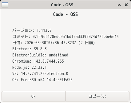 XFCE - FreeBSD 14.4 RELEASE - 開発環境 Visual Studio Code