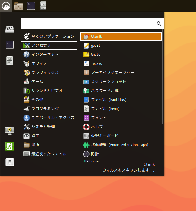アンチウイルスソフトとして、「ClamTk」を使用します。