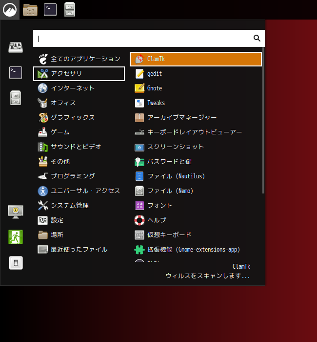 アンチウイルスソフトとして、「ClamTk」を使用します。