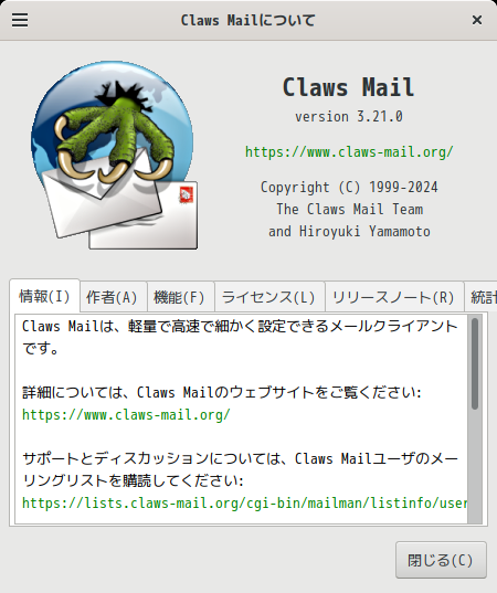 Cinnamon - FreeBSD 14.2 RELEASE - メールクライアント Claws Mail