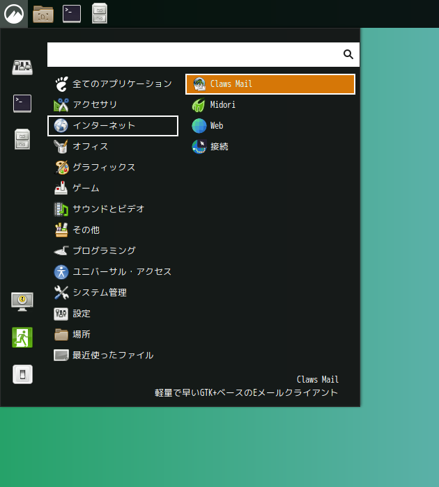 1. 概要 メールクライアントとして、「Claws Mail」を使用します。 「設定ウィザード」他、操作については「共通事項 - メールクライアント - Claws Mail」をご参照ください。 2. インストール 「OctoPkg」で、「claws-mail」を検索して、インストールします。 3. 起動 「スタート」→「インターネット」→「Claws Mail」