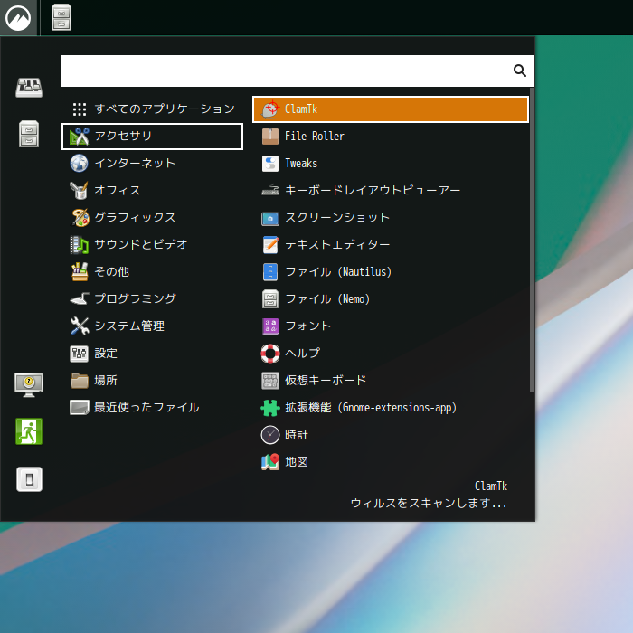 アンチウイルスソフトとして、「ClamTk」を使用します。