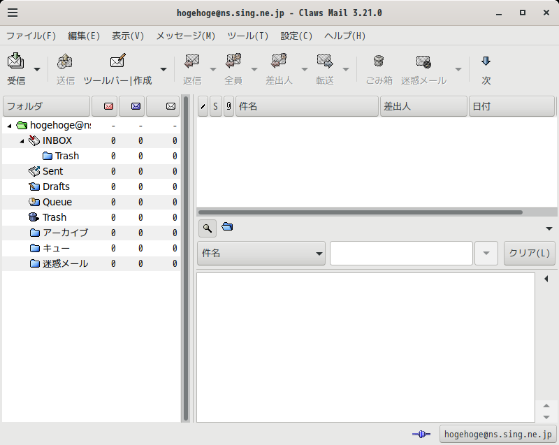 メールクライアントとして、「Claws Mail」を使用します。  「設定ウィザード」他、操作については「共通事項 - メールクライアント - Claws Mail」をご参照ください。