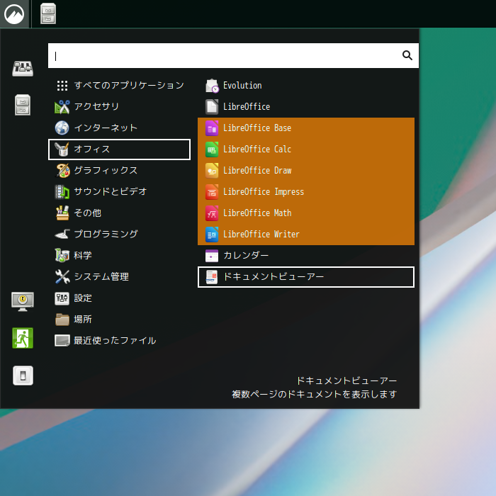 1. 概要 ドキュメントビューアとして、「Evince」を使用します。 「Evince」は、デフォルトでインストールされています。 「GNOME3」の上に、「Cinnamon」をのっけているからでしょう。 2. 起動 「スタート」→「オフィス」→「ドキュメントビューア」
