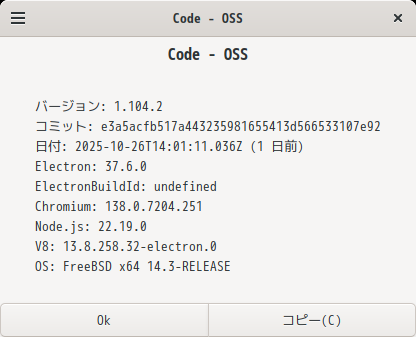 Cinnamon - FreeBSD 14.3 RELEASE - 開発環境 Visual Studio Code
