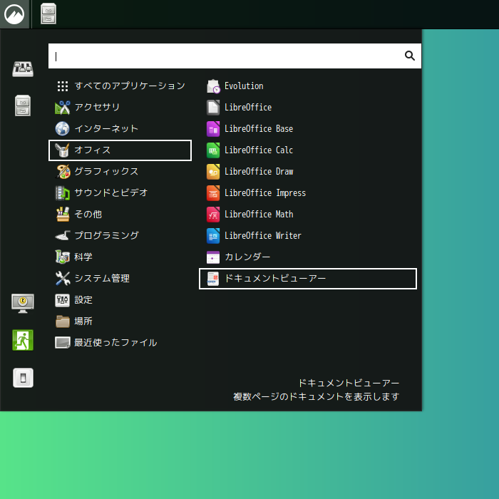 1. 概要 ドキュメントビューアとして、「Evince」を使用します。 「Evince」は、デフォルトでインストールされています。 「GNOME」の上に、「Cinnamon」をのっけているからでしょう。 2. 起動 「スタート」→「オフィス」→「ドキュメントビューア」