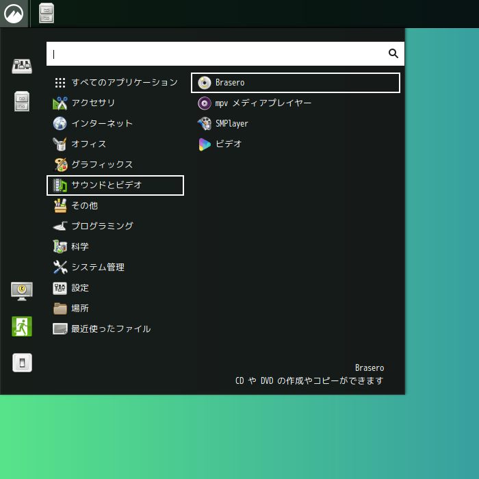 「スタート」→「サウンドとビデオ」→「Brasero」