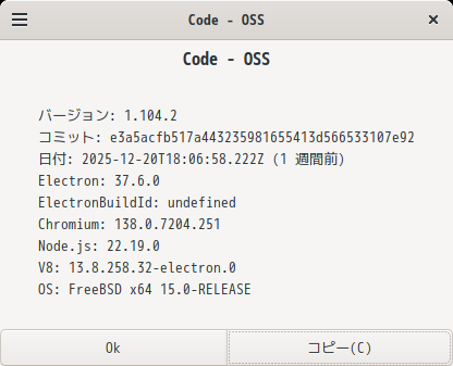 Cinnamon - FreeBSD 15.0 RELEASE - 開発環境 Visual Studio Code