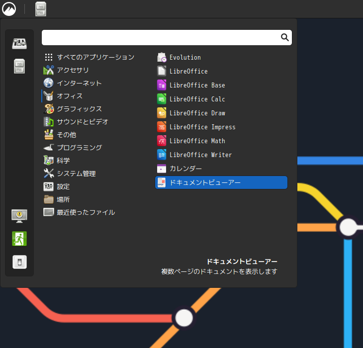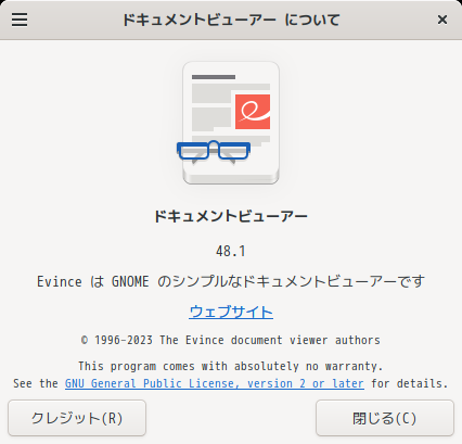 1. 概要 ドキュメントビューアとして、「Evince」を使用します。 「Evince」は、デフォルトでインストールされています。 「GNOME」の上に、「Cinnamon」をのっけているからでしょう。 2. 起動 「スタート」→「オフィス」→「ドキュメントビューア」