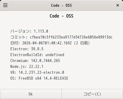Cinnamon - FreeBSD 14.4 RELEASE - 開発環境 Visual Studio Code