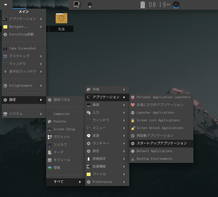 「Enlightenment」の自動起動設定は、ちょっと面等。