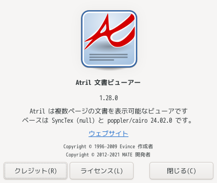 ドキュメントビューアとして、「Atril」を使用します。
