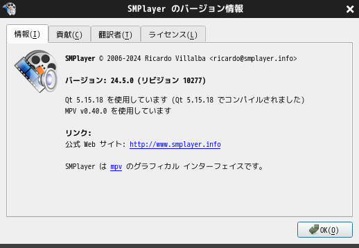1. 概要 マルチメディアプレイヤーとして、「SMPlayer」を使用します。 2. インストール 「OctoPkg」で、「smplayer」を検索して、インストールします。 3. 起動 「スタート」→「アプリケーション」→「Multimedia」→「SMPlayer」