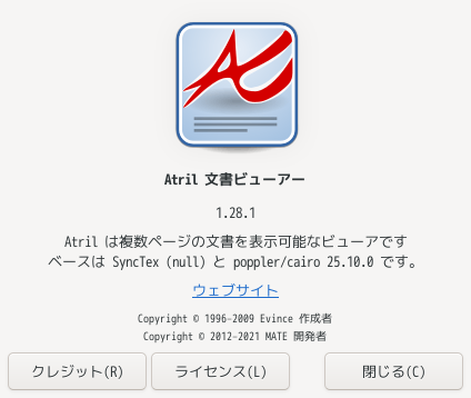 1. 概要 ドキュメントビューアとして、「Atril」を使用します。 2. インストール 「OctoPkg」で、「atril」を検索して、インストールします。 3. 起動 「スタート」→「アプリケーション」→「Office」→「Artil ドキュメントビューア」