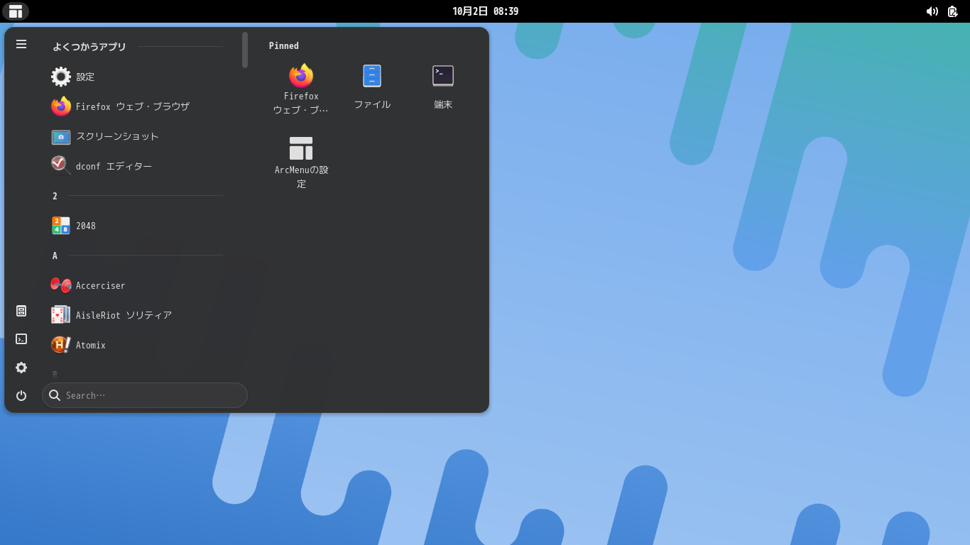 レイアウトを変更しようとするとこけるので、デフォルトの「Arc Menu」のまま使用するしかない。