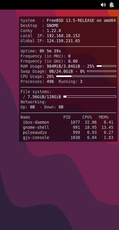 GNOME - FreeBSD 13.5 RELEASE - タスクマネージャ Conky