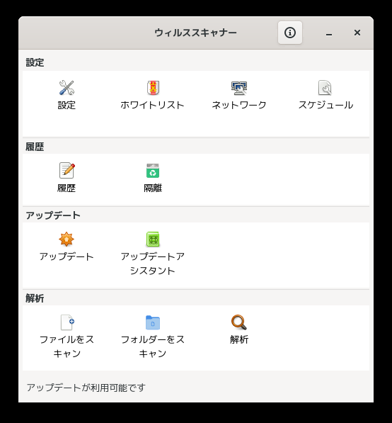 操作については「アンチウイルスソフト ClamTk」を参照してください。