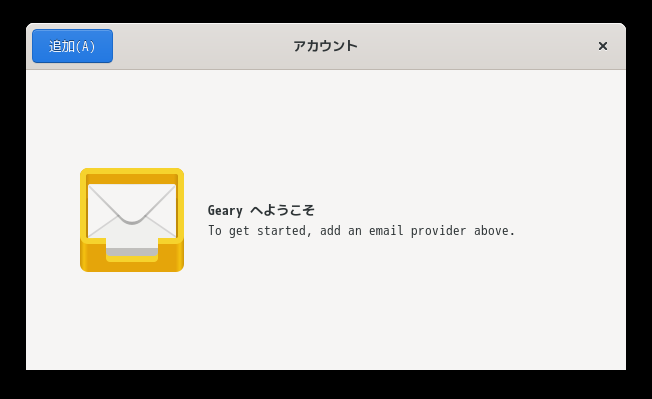 前回は、初回起動時に、「ようこそ」が開きませんでしたが。 今回は、「ようこそ」から始まりました。 起動直後の状態です。 2025年12月29日の時点で、下記のバージョンでした。 「アカウント設定」他、操作方法については、「メールクライアント - Geary」をご参照ください。 |