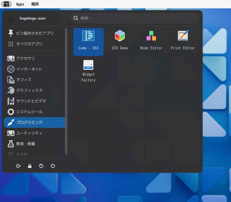 「スタート」→「プログラミング」→「Code - OSS」