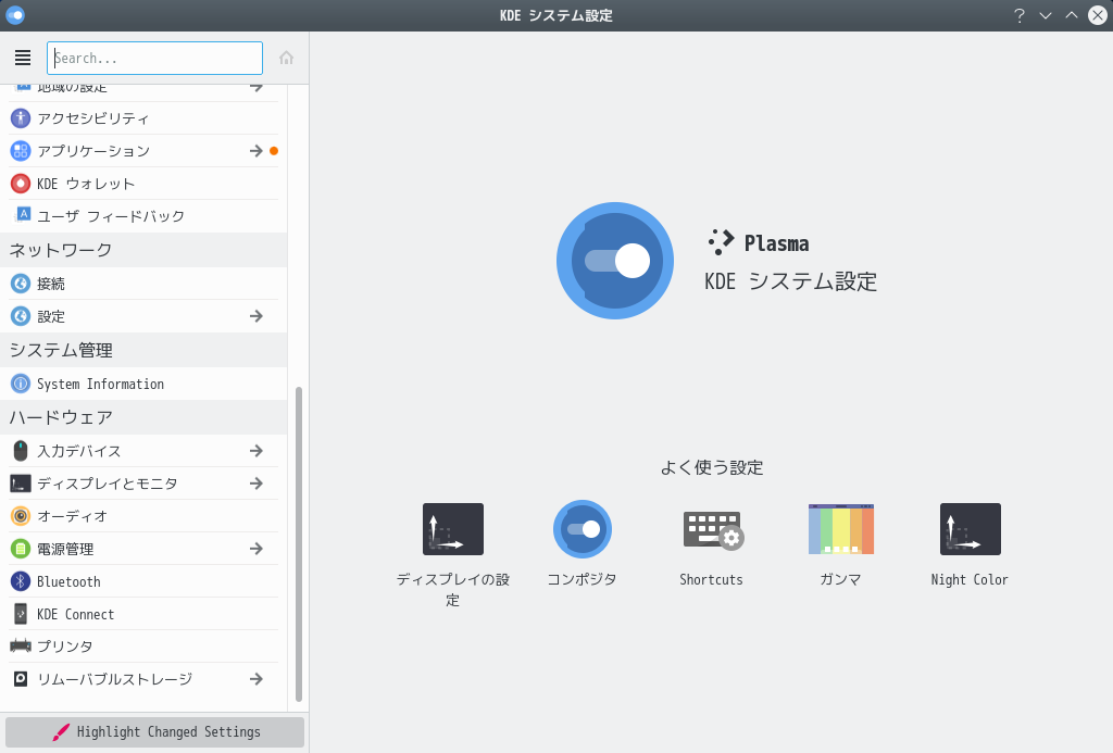 「KDE システム設定」で「Global Theme」を「Breeze」へ変更すれば、デフォルトに近い状態になります。
