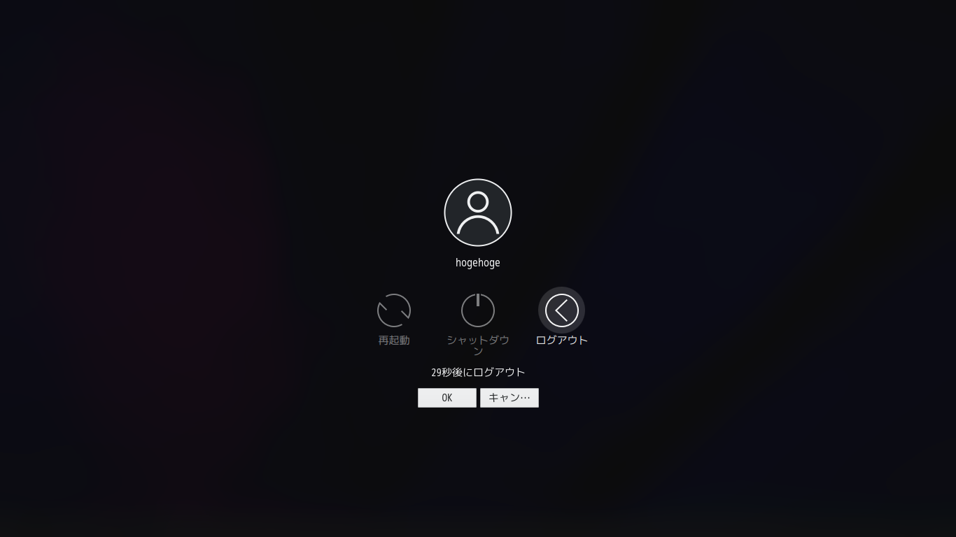 実際 30秒待つか、「OK」を押すか、再度「ログアウト」を選択しないとログアウトしない。 これは、「シャットダウン」や「再起動」ならば、いざ知らず。 ログアウトぐらいで、いちいちこんなことをするのは鬱陶しい。 |
