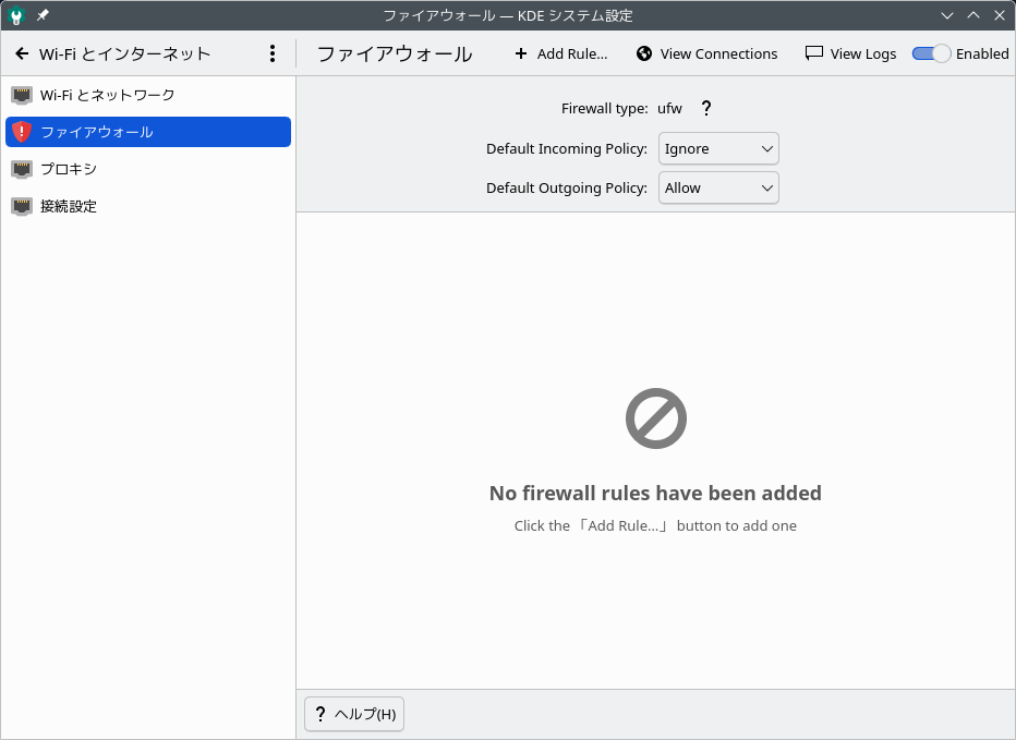 「ファイアウォール」タブ。