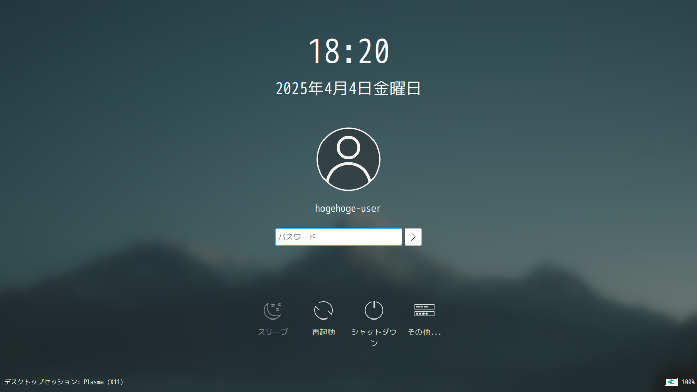 再起動後、以下の画面が表示されれば基本的な設定は完了です。