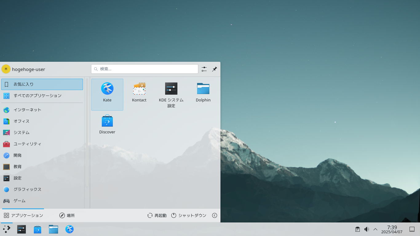 「KDE」に関する共通的な操作やカスタマイズ方法に関しては、「KDE - 共通事項」をご参照ください。