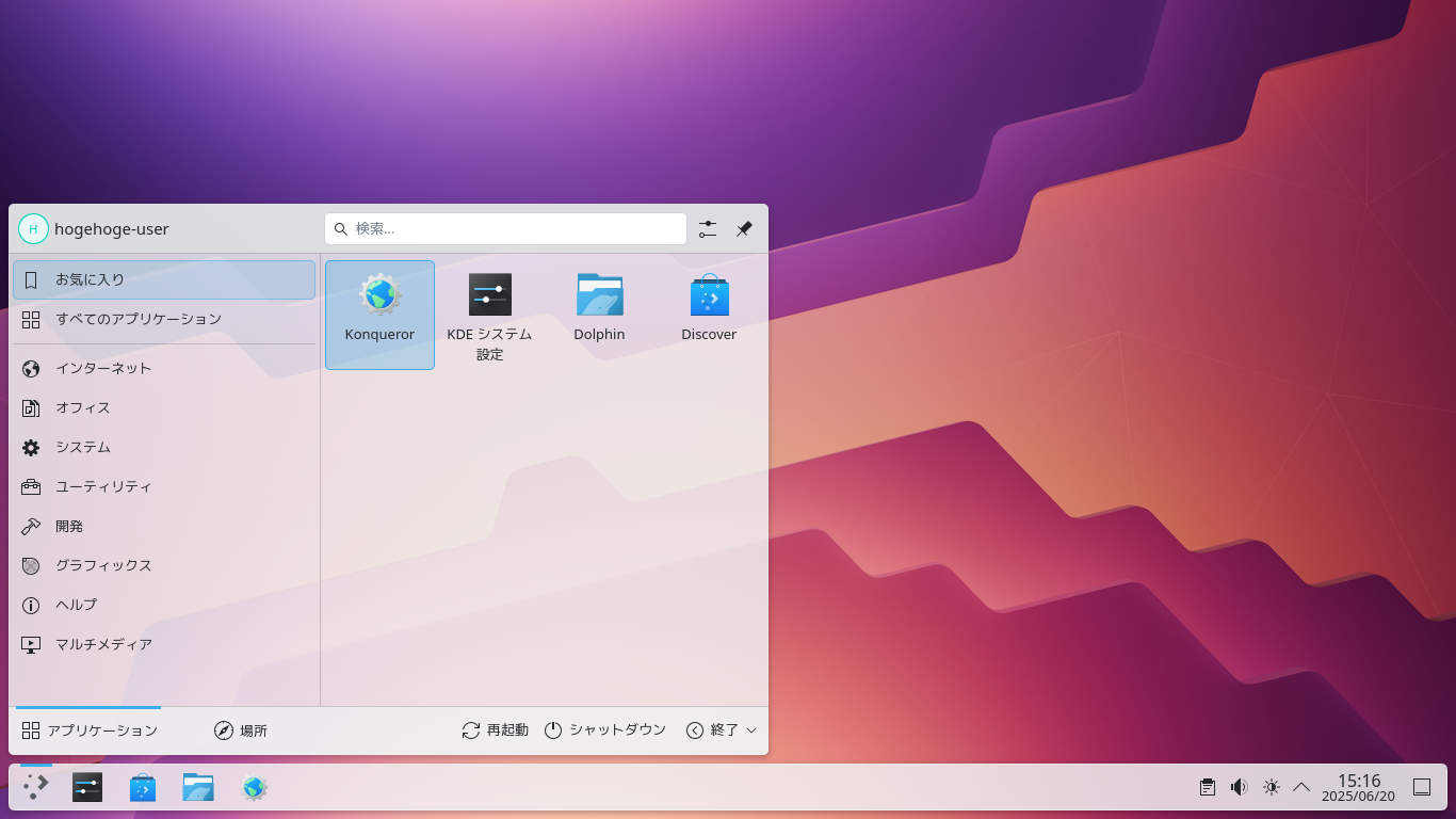 「KDE」に関する共通的な操作やカスタマイズ方法に関しては、「KDE - 共通事項」をご参照ください。
