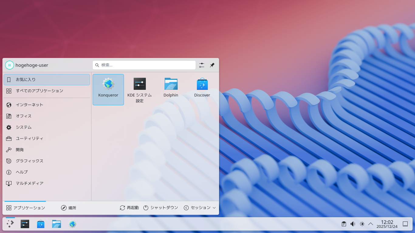 「KDE」に関する共通的な操作やカスタマイズ方法に関しては、「KDE - 共通事項」をご参照ください。