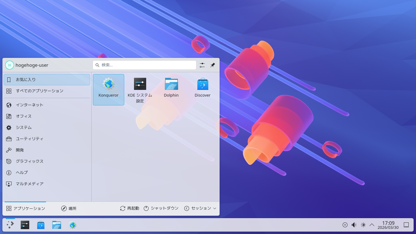 「KDE」に関する共通的な操作やカスタマイズ方法に関しては、「KDE - 共通事項」をご参照ください。