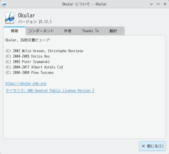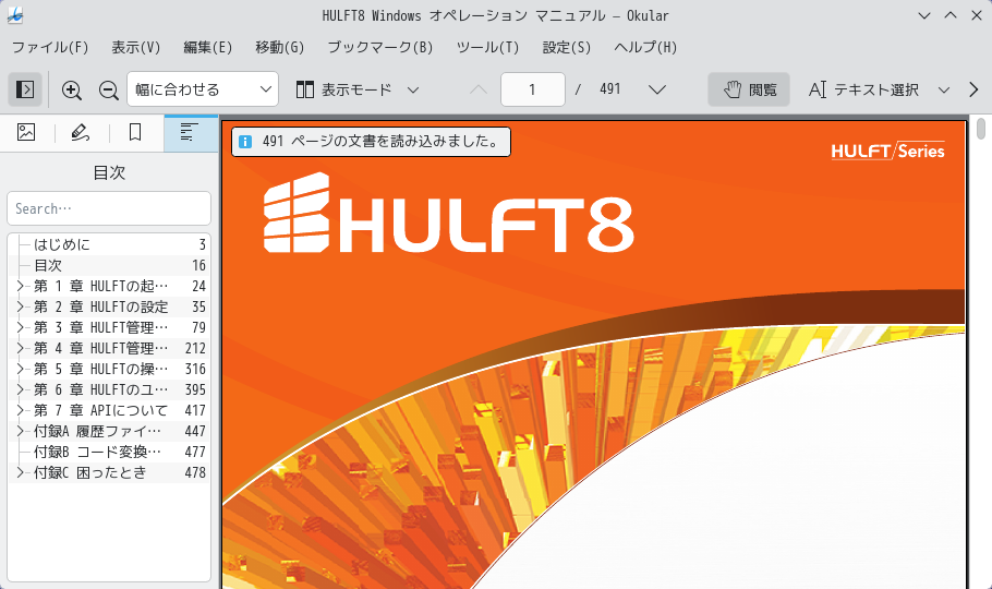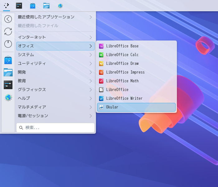 1. 概要 ドキュメントビューアとして。「Okular」を使用します。 「Okular」は、デフォルトでインストールされています。 2. 起動 「スタート」→「オフィス」→「Okular」