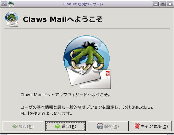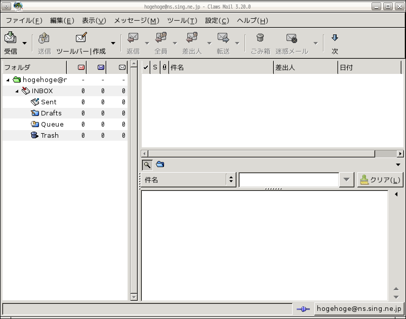 初回起動時は「設定ウィザード」から始まります。 起動直後の状態です。 2024年10月8日の時点で、下記のバージョンでした。 「設定ウィザード」他、操作方法については、「メールクライアント - Claws Mail」をご参照ください。 |