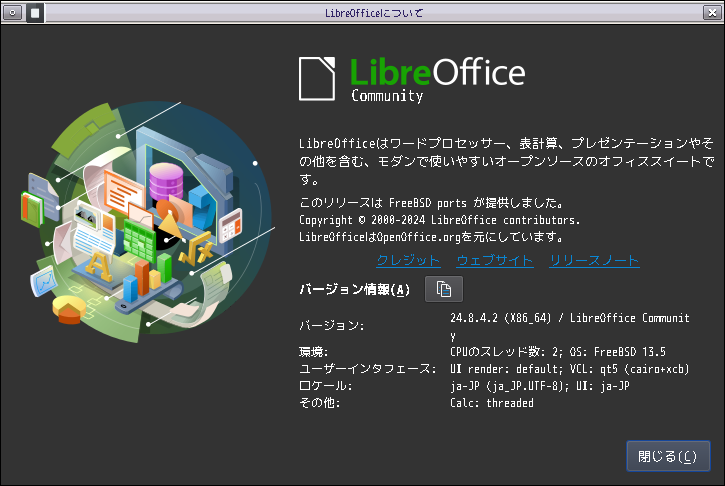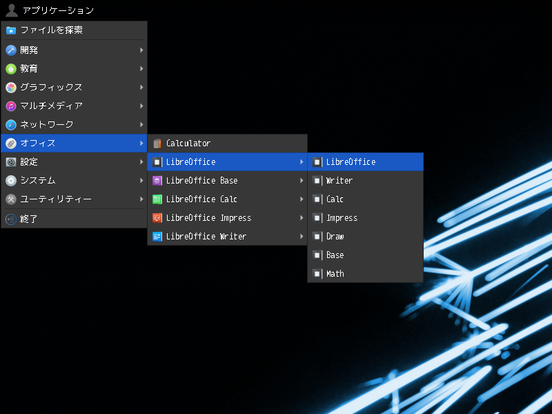 1. 概要 オフィススイートとして、「LibreOffice」を使用します。 2. インストール 「OctoPkg」で、「ja-libreoffice」を検索して、インストールします。 3. 起動 「アプリケーション」→「オフィス」→「LibreOffice」→「LibreOffice」