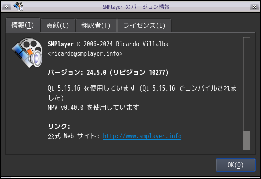 前回、「SMPlayer」がこけちゃったので、「Baka-MPlayer」を使用したのですが、今回は「SMPlayer」が動作しました。