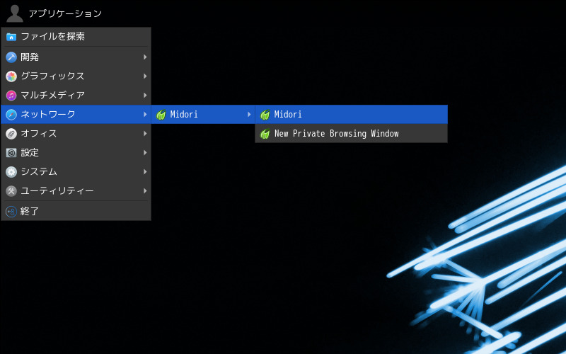 1. 概要 ブラウザとして、軽いので、「Midori」を使用します。 2. インストール 「OctoPkg」で、「midori」を検索してインストールします。 3. 起動 「アプリケーション」→「ネットワーク」→「Midori」→「Midori」