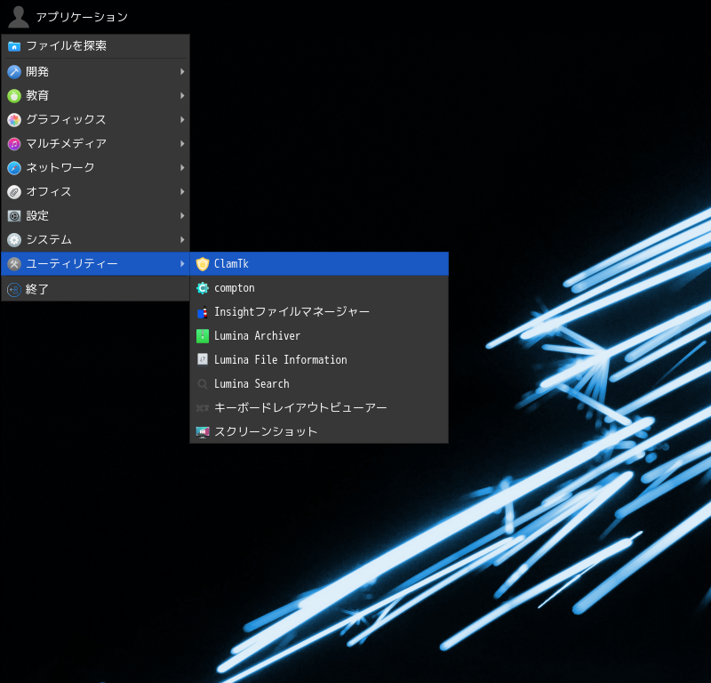 操作については「アンチウイルスソフト ClamTk」を参照してください。