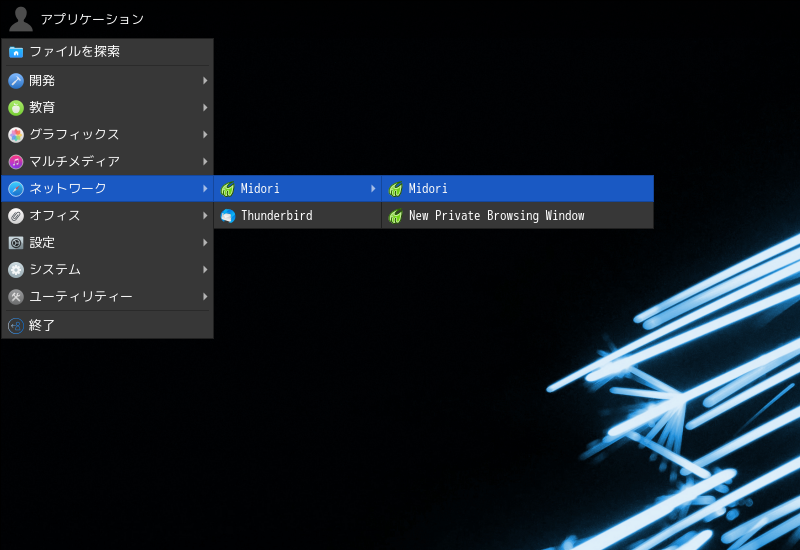 1. 概要 ブラウザとして、軽いので、「Midori」を使用します。 2. インストール 「OctoPkg」で、「midori」を検索してインストールします。 3. 起動 「アプリケーション」→「ネットワーク」→「Midori」→「Midori」