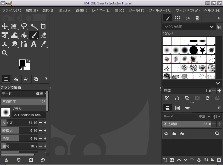 「閉じる」 起動直後の状態です。 2026年4月3日の時点で、下記のバージョンでした。 操作については、「画像編集ソフト - GIMP」に掲載しています。 上記は簡単なものですので、詳細なものがほしい方は、各所に初歩の手引きから応用編までありますので、そちらを参考にしてください。 |